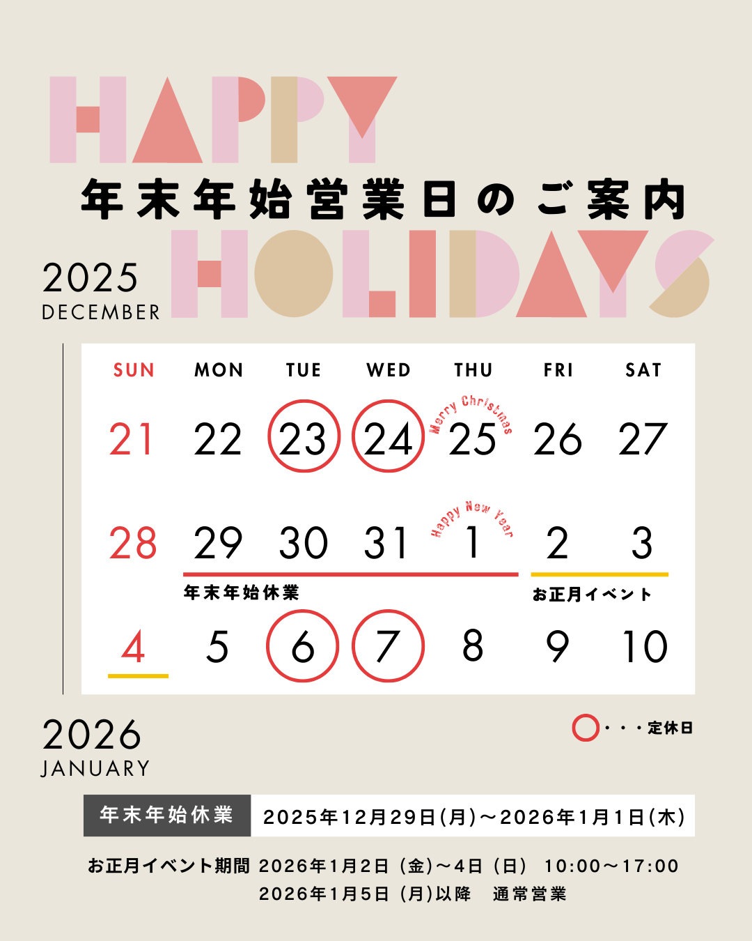 年末年始休業:2025年12月29日(月)~2026年1月1日(木)