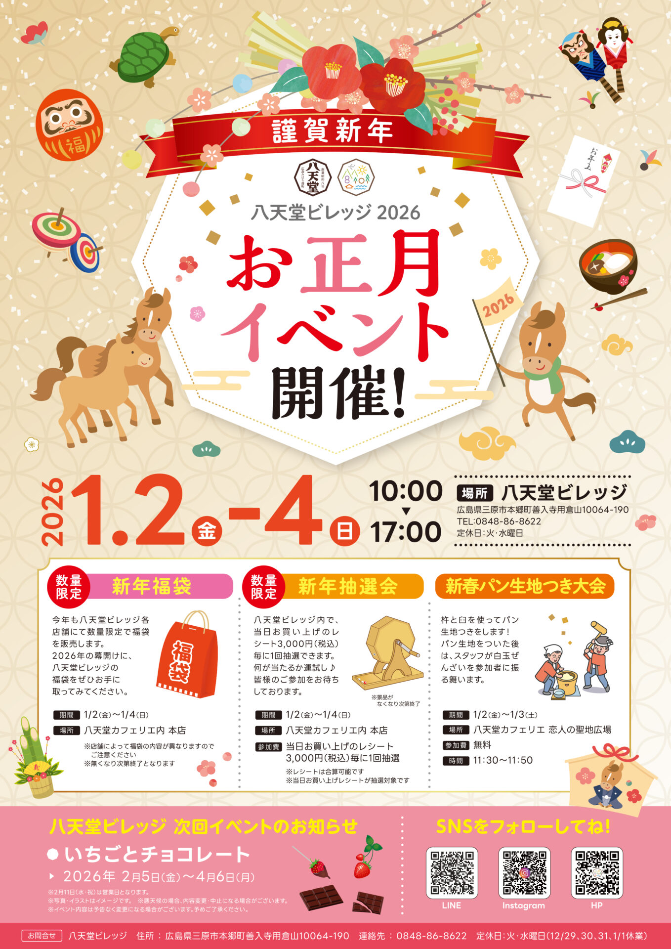 ぜひ、八天堂ビレッジで楽しいお正月をお過ごしください😊